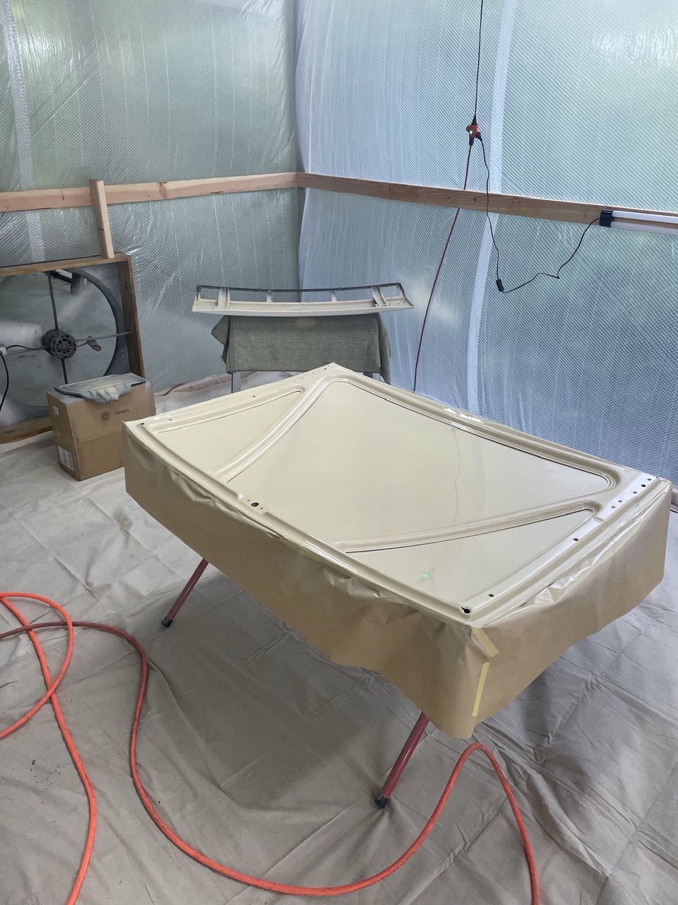 I am revamping an half of an old loafing barn into a body shop for an excuse to love what I do instead of a dreaded job. Anyhow we are taking the stalls out and pouring concrete and adding heat, insultion, lights etc. But the ceiling is somewhat irregular. As a result I will have to custom build my spray booth out of plywood...or? I would like it to be a cross draft booth. The foot print will be 20 buy 30 feet. So far I have 3 914s and a bug that will need to be painted. I am looking for ideas from any one who has built a permanent booth, from air extraction fans, filtration, heat,to doors etc... looking for ideas.