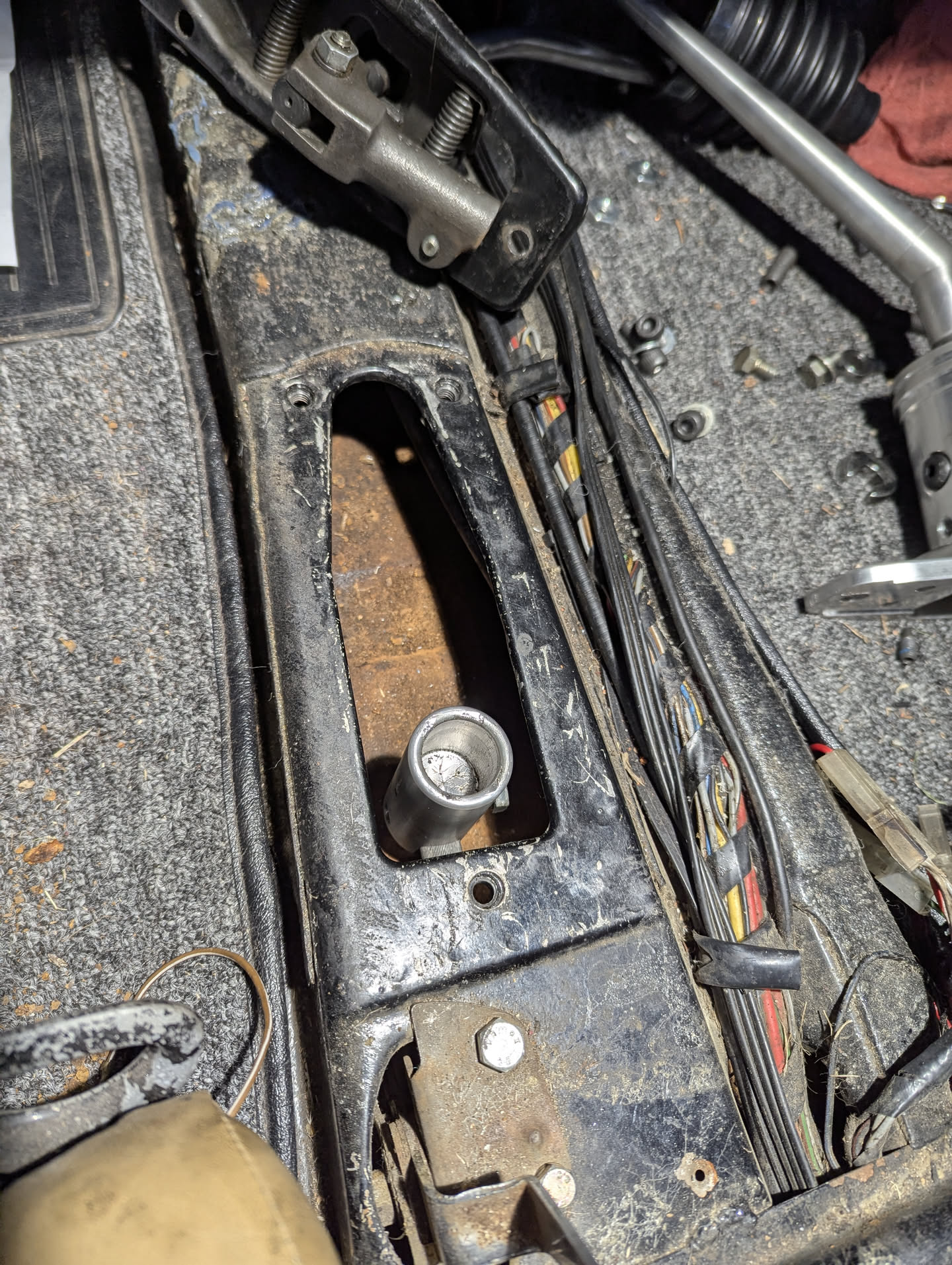 is that a 914 side model JWSTRSSDSTSN Yea, What's pictured is a stock side shifter but the rod in the tunnel has a tail shifter cup. The stock rod would have a round shaft at the end, not a cup. Did you change it for some reason? No. I got the car this way. It's always shifted like crap. I wonder if I'm screwed here. The tail shifter cup came with the Rennshift as a way to mount to the rod. That's what I was told I needed, anyway. |