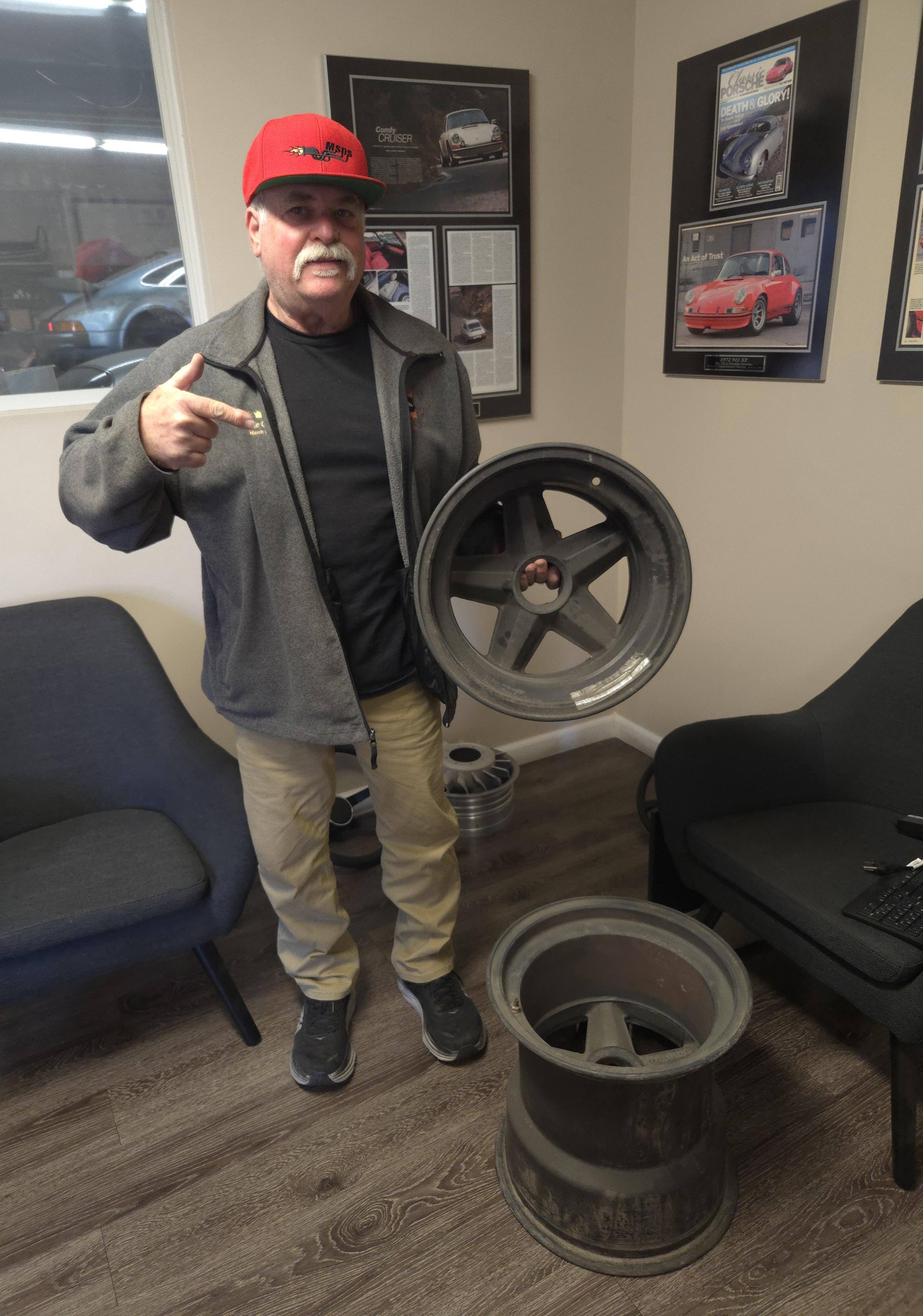 Front and rear magnesium wheels from one of (late) Vasek Polak's 917 spares at a friend's shop >> pick it up with ease ! (IMG:style_emoticons/default/marty914.jpg) |