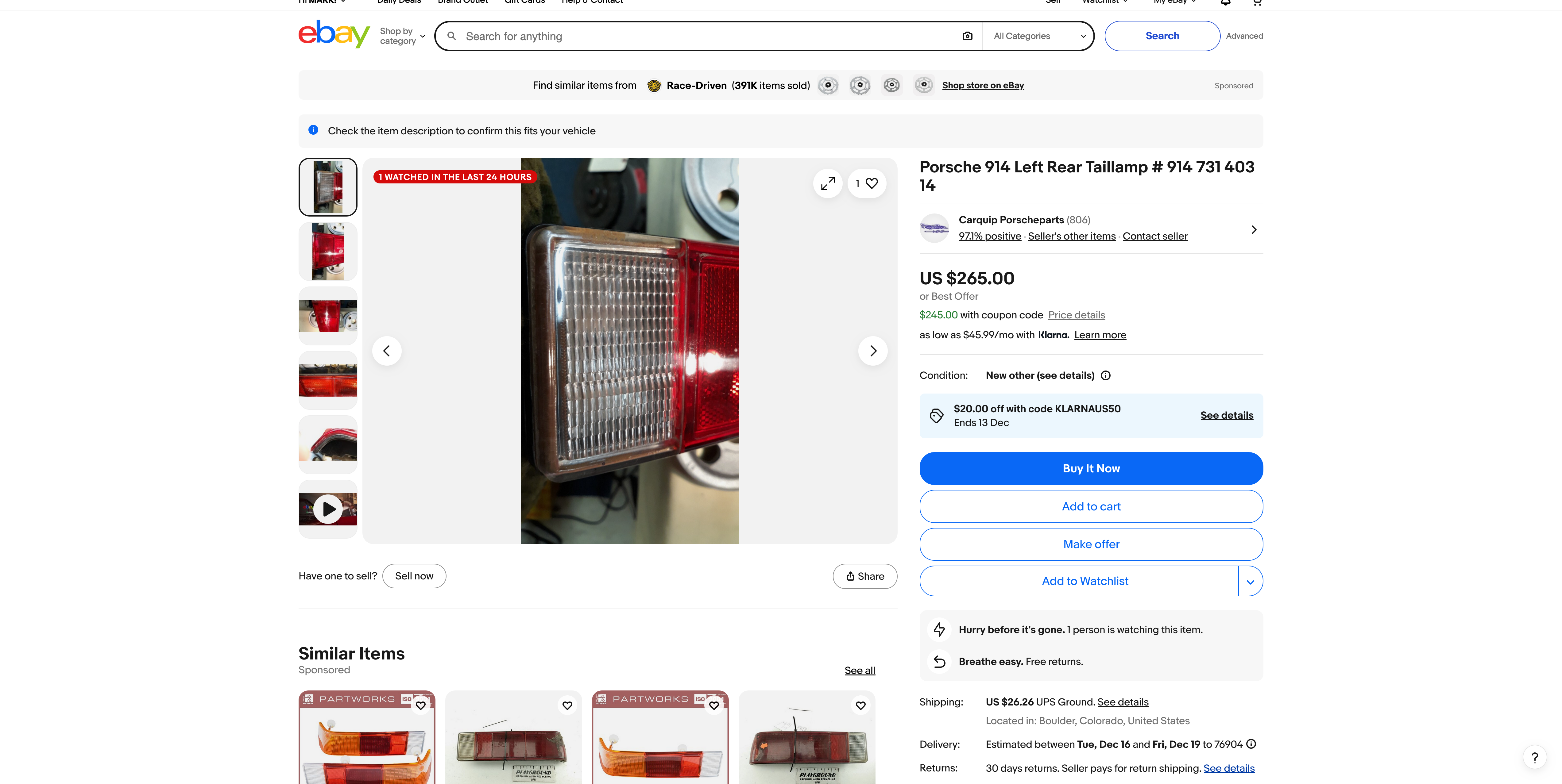 Still looking for a NOS or an excellent condition drivers side tail lens (US version).