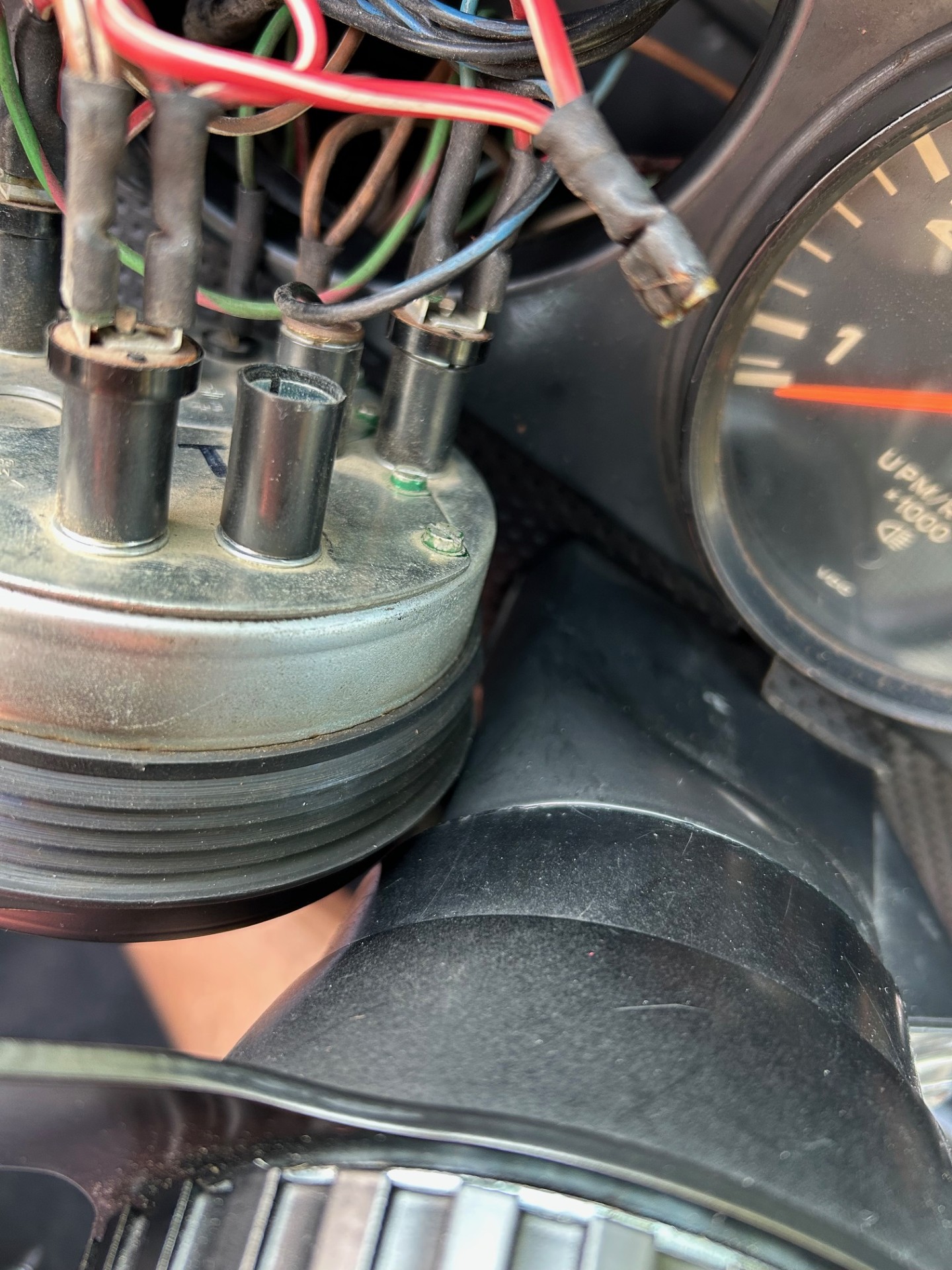 One side for parking brake and the other for MC fault switch? If you don't find where the red/white QC connector goes, at least tape it up or heat shrink something on that exposed connector. Lots of metal to ground out behind the gauges. |