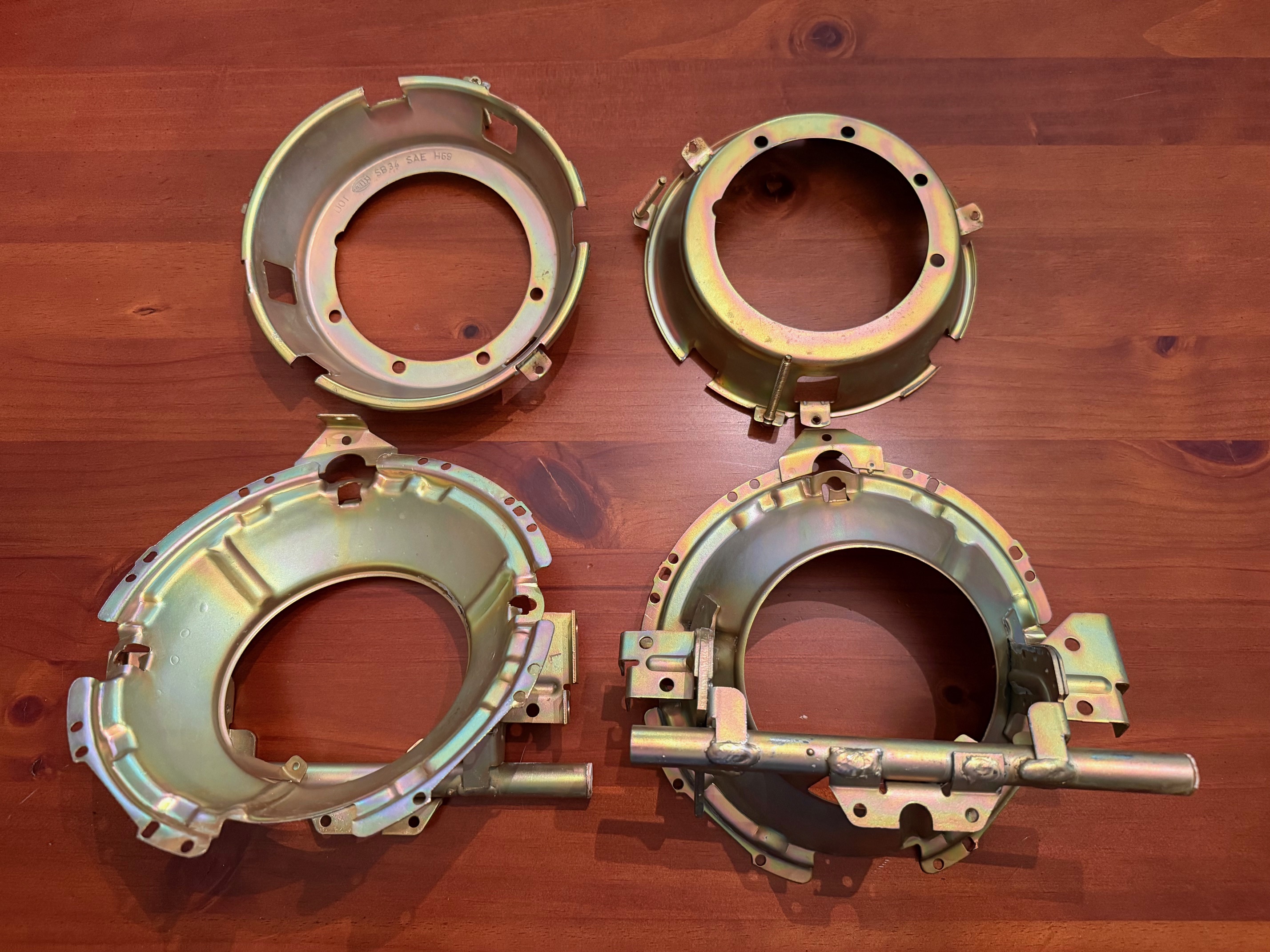 Restored headlight buckets. Mid to late model years. Not for early 70-71 and maybe 72. Yellow zinc plated. I know this is not stock. You can use the recommended grey spray paint to paint them a stock color or use them as-is. Either way, they should be pretty rust and corrosion resistant. Needs hardware, springs and nylon bushings - all available new from the usual sources. $150 + ship. PM or email me at - Mark@MarkEpstein.net to purchase.