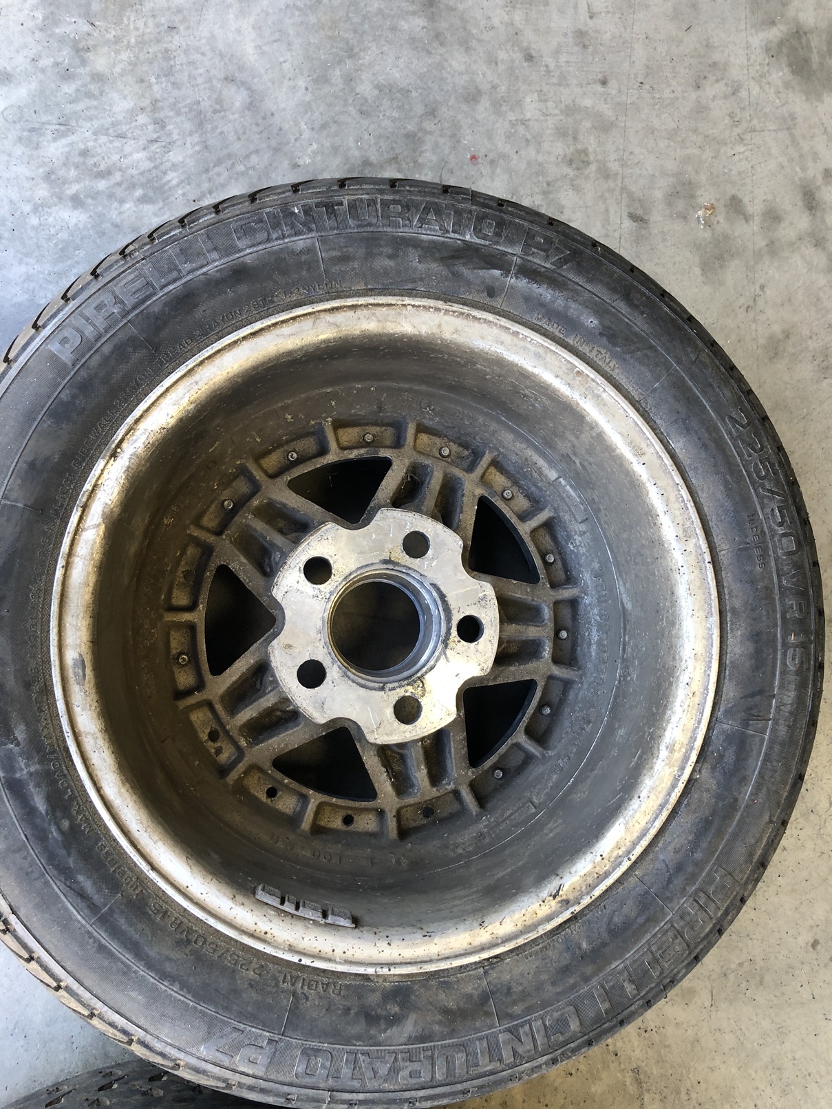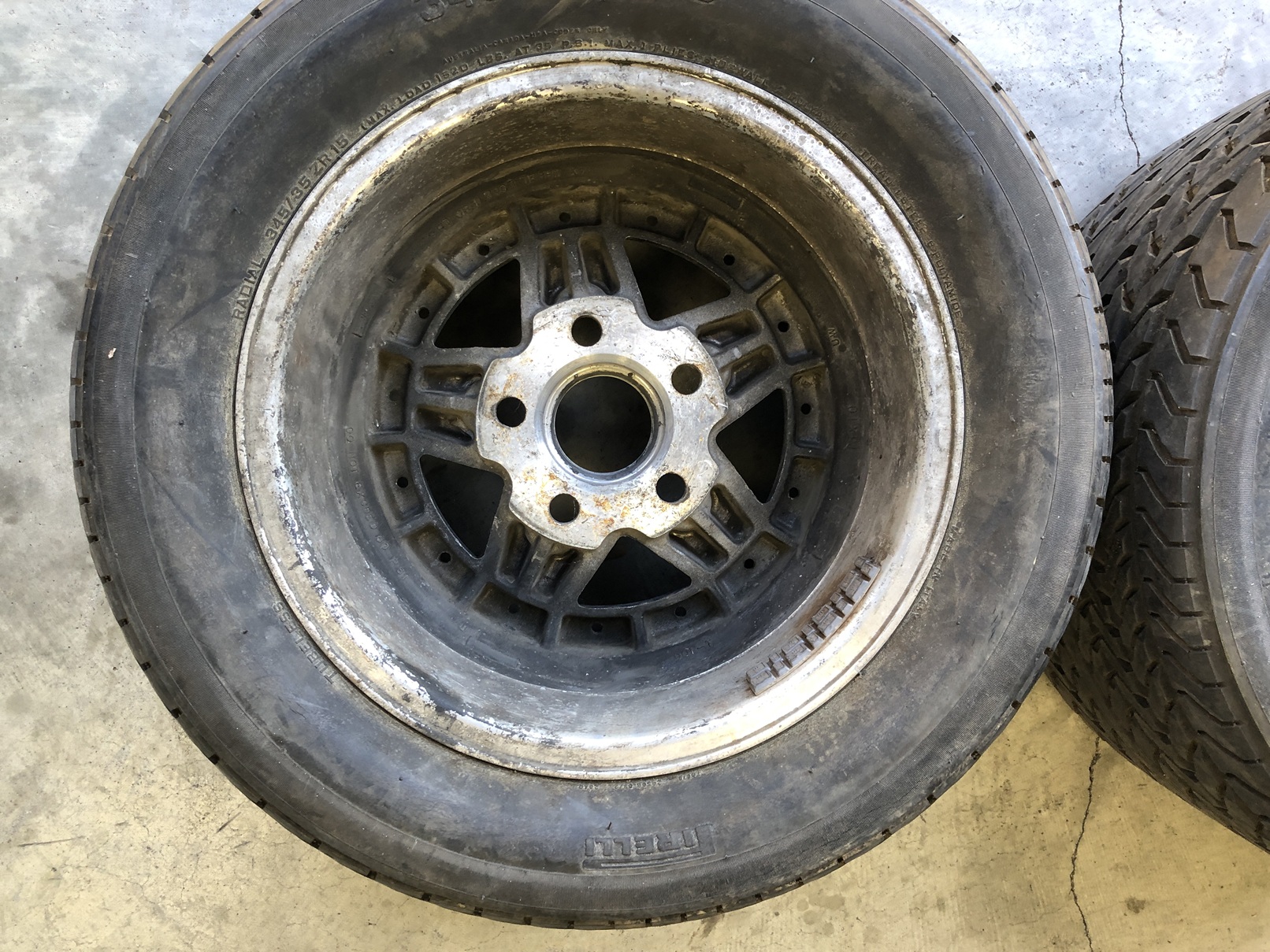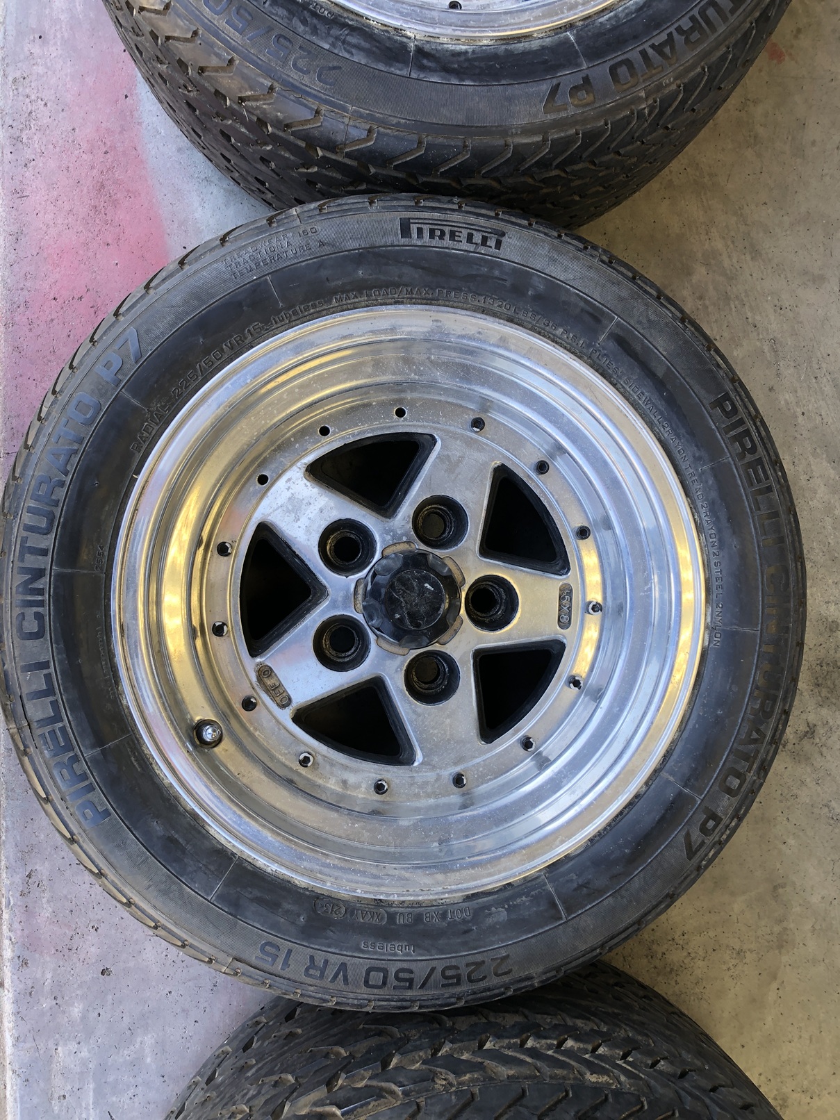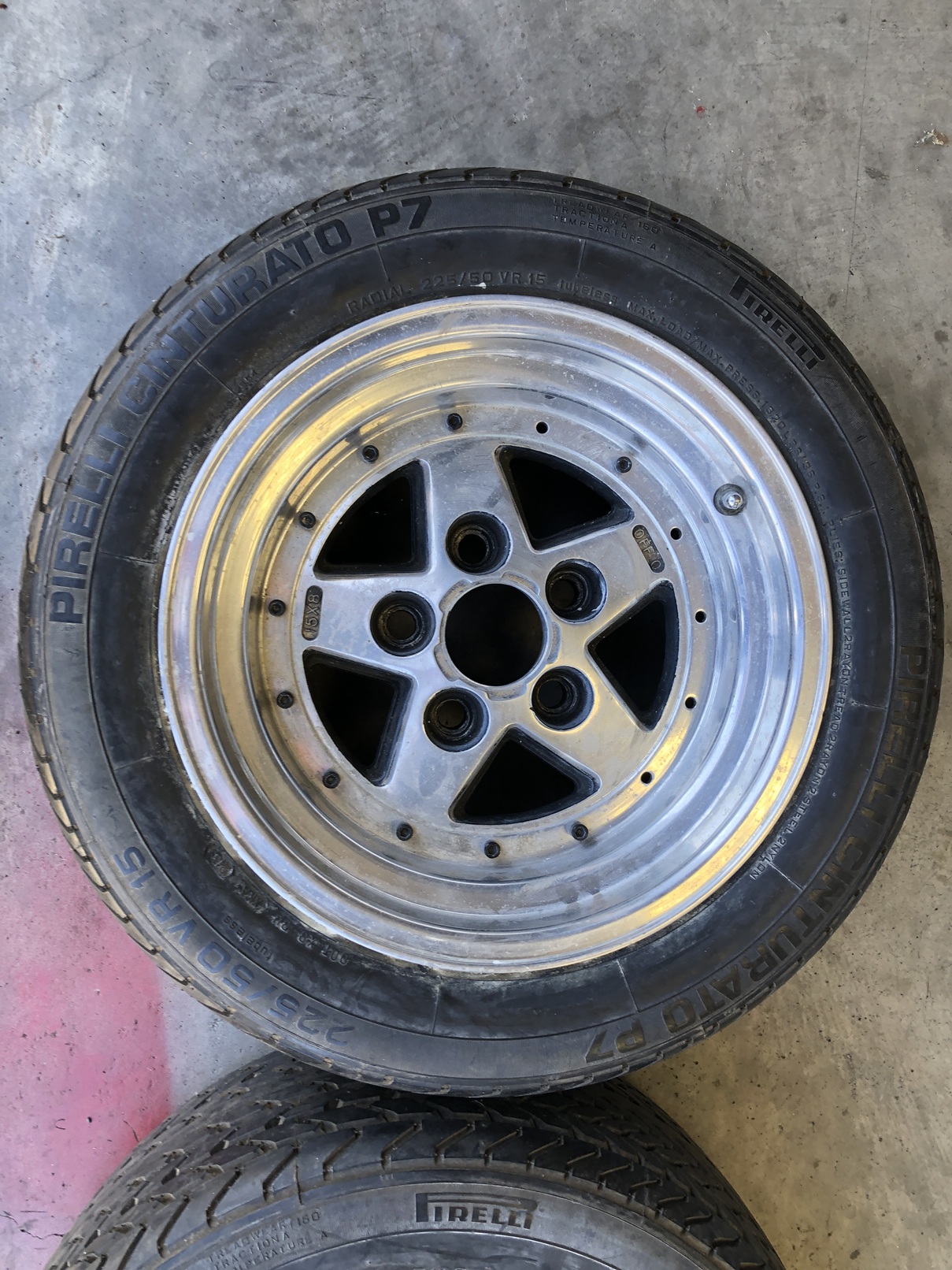 These are Gotti replicas. 8" x 15" with 225/50s and 10" X 15" with 345/35 Pirelli Cinturato P7s! Of course the tire are beyond aged out and cracked everywhere but so what?!? Imagine what cool coffee tables you could have in your man cave! Or, replace the tires - yes, these sizes are available from Tire Rack - and run them on your wide body 914 or 911. I'm halfway tempted to swap them onto the Group 5 914... (IMG:style_emoticons/default/idea.gif) But no. They have to go! All this for only $500 plus shipping from 94952, though I'd REALLY prefer local pick up. Thanks for looking. Chris Attached thumbnail(s) |