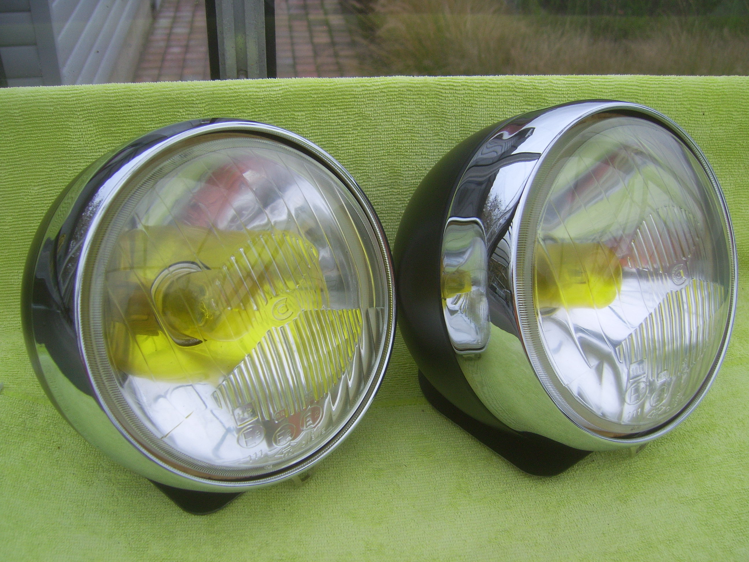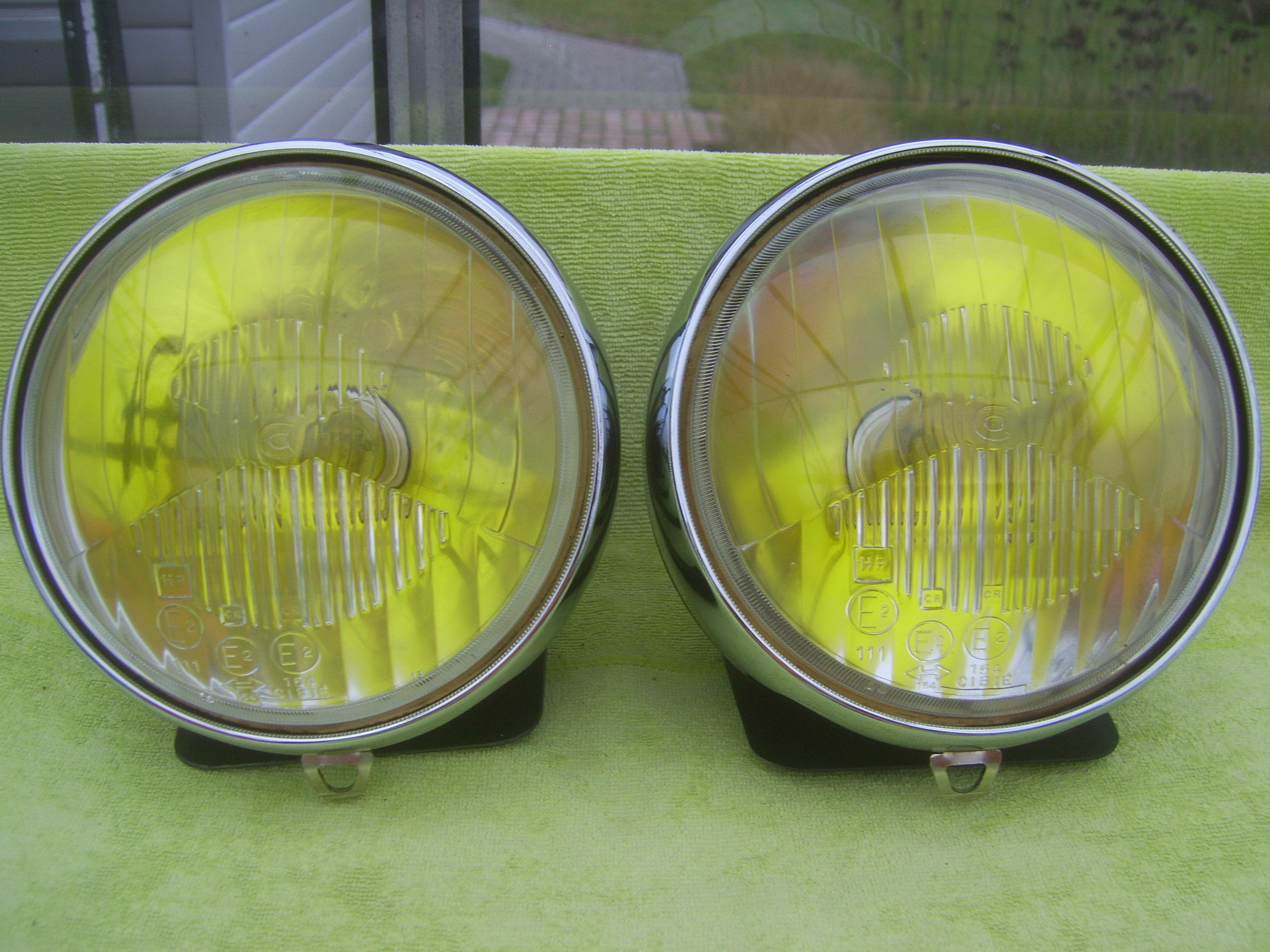 FS: Set Original Cibie hood lights with yellow bulb covers in very good condition, complete with 12 Volt H1 bulbs, wiring and mountingplates. Price is 535 euro + shipping.