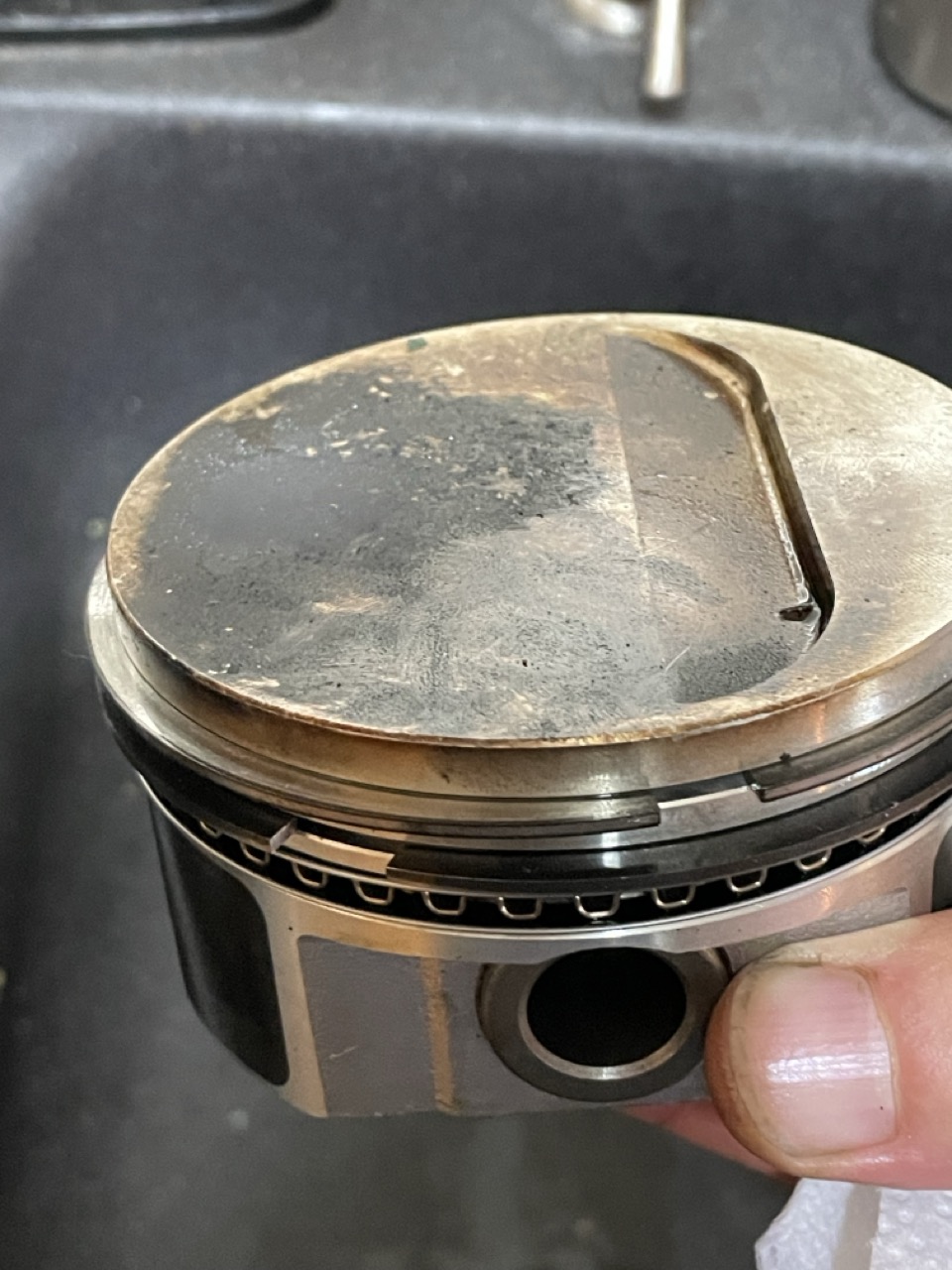 Upon tearing down the engine after approx 3 hrs of run time due to low hot oil pressure, this is what I found. See pics 3-5. On piston #1 and 2, they were exactly where I placed them when I built the engine. But on cylinder #3, the top compression ring had rotated all the way around almost on top of the compression ring below it! And on piston #4, one of the compression rings had moved into the skirt area. The interesting thing is on cylinder #3, the one where the compression rings were over each other, I always had a 1.5 lower reading on my vacuum gauge while trying to sync the carbs. Carb throat #1,2,4 would read at say 7 on my snail, and throat #3 would read 5.5. I guess it’s just luck of the draw where they end up, even if you set them correctly. I’ve never had one of my engines apart before, until this 914. (IMG:style_emoticons/default/headbang.gif) All the other engines I’ve built ran great and still are after 25 years on some of them. I never considered that the rings would move so much around the pistons. Attached thumbnail(s) |