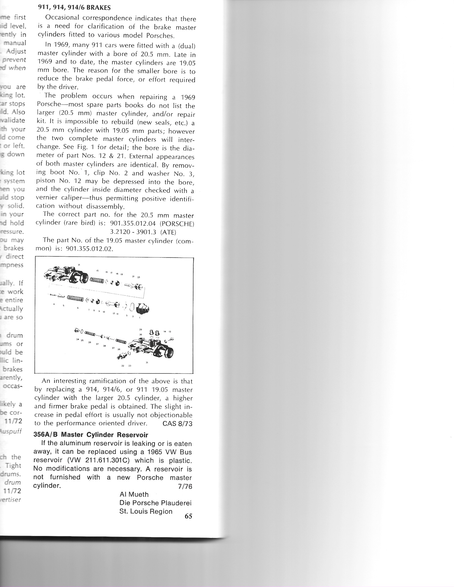 Found this and passing info on. I have one of the 20mm on the 1975. Never could prove it was a factory part. Article clears up myth that the larger master cylinder came from Mercedes.