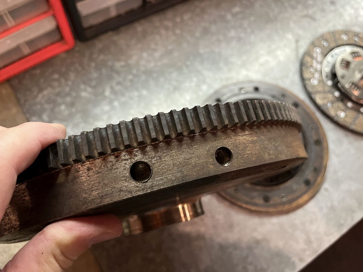 Replacing an original factory clutch dated 7/73, as it had started shuddering at launch and making weird noises. A "while I was in there" job. ~50Kmi car. This transaxle had never been previously removed from the car.