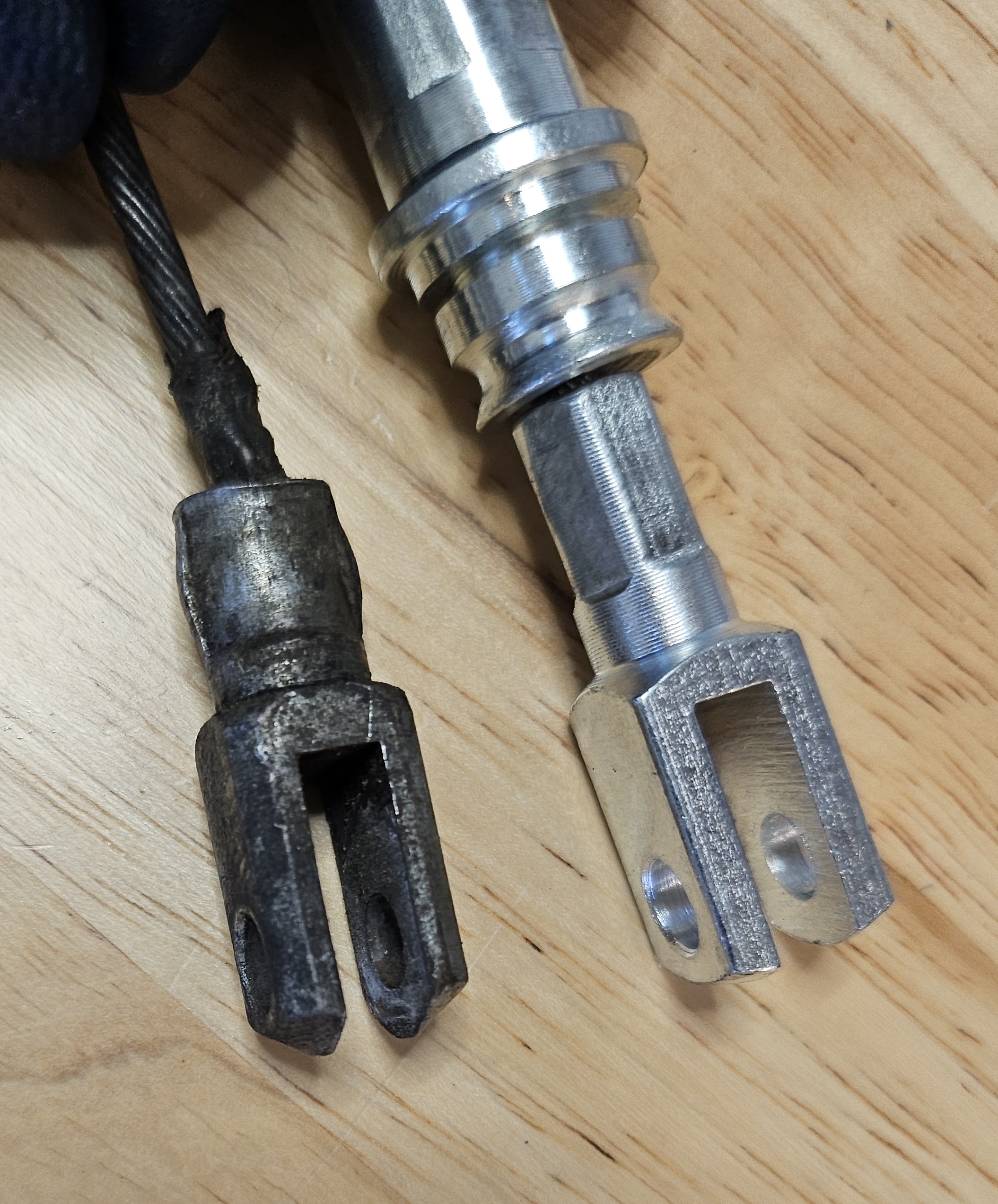 I got the same cable that doesn't fit until you grind the edge down to fit. It also has 16mm adjustment nuts unlike the original 17mm. Why can't our replacement parts meet original specifications?