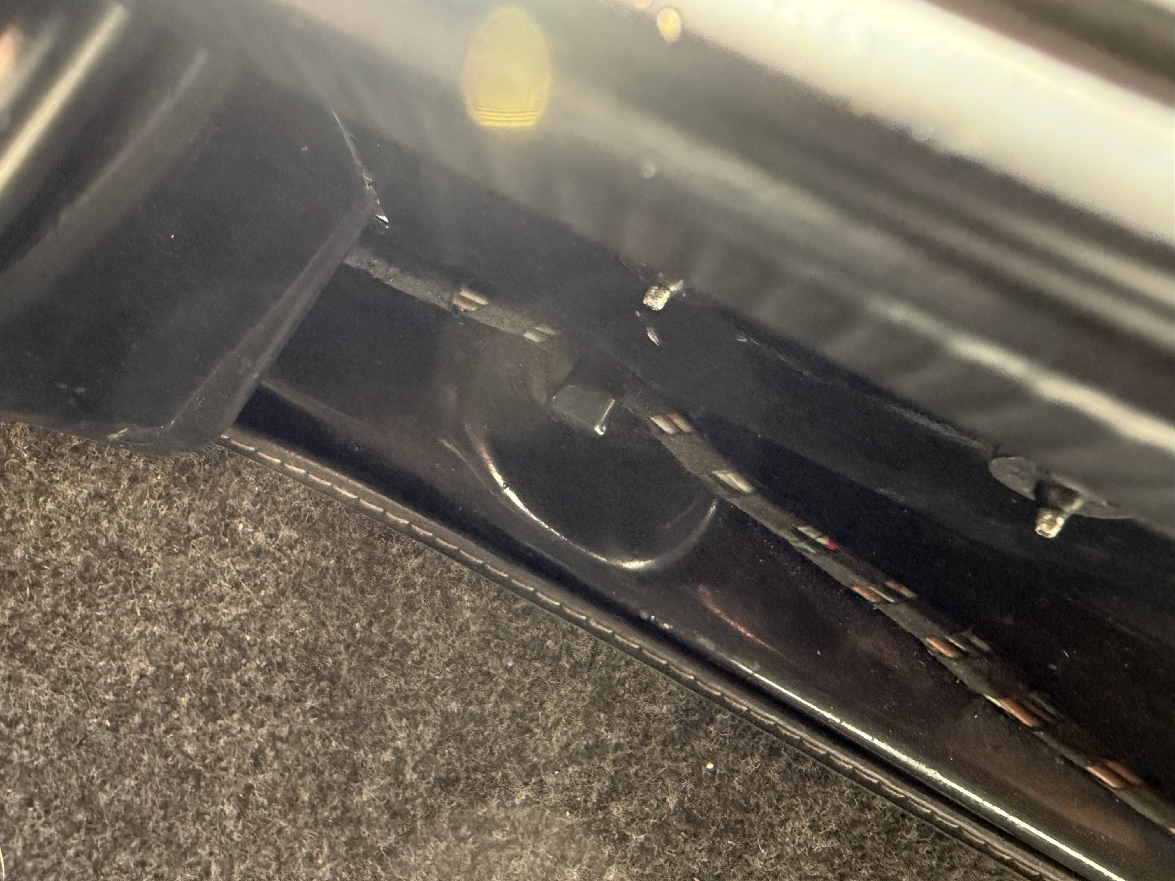 You might want to consider consulting a paintless dent removal person and see what they have to say. This might not do. If i interpret the images correctly, the dent is in the structural boxed part underneath the flat panel. If so, i don't think this can be easily reversed without disturbing the paint. (IMG:style_emoticons/default/idea.gif) |