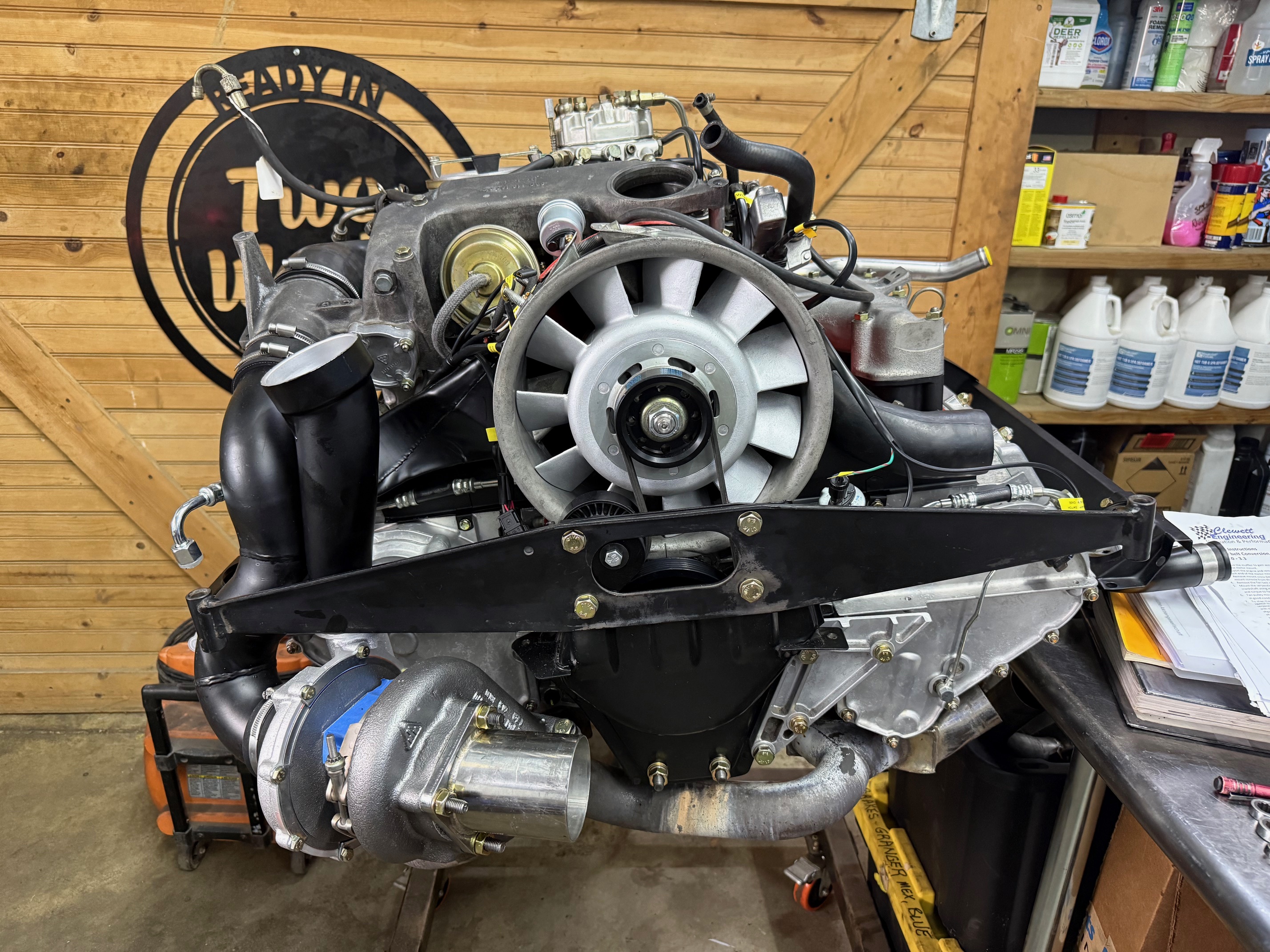 Soon it will be on the test stand and once it’s running, we will convert to electronic ignition and coil on plug. I can’t remember the compression ratio but I recall it being a bit more than stock. The real hero of the build is the cam and turbo upgrade. Cams are turbo SC and the turbo is highly modified and builds boost 500-800 rpm’s earlier than stock. We’ve built two similar engines and they are a hoot. Hopefully it will make the owner smile. Attached thumbnail(s) |