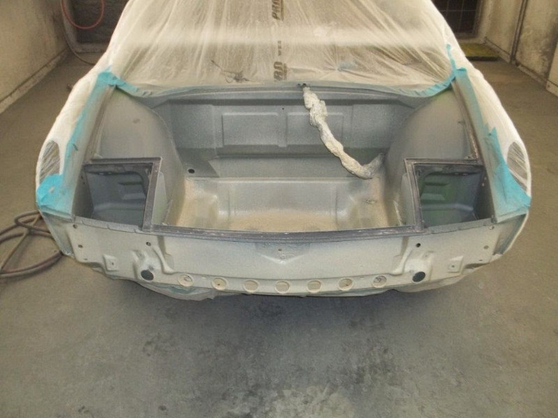 Then the house remodeling got serious. The car sat for four years before I decided I wasn’t going to learn body work and the car deserved better. I hired Eurotech Bodywerkes to finish the rust repair and repaint the car. When I bought it, the car had been re-sprayed (and poorly masked) in a John Deer green. The plan was to go back to the factory color: willow green.