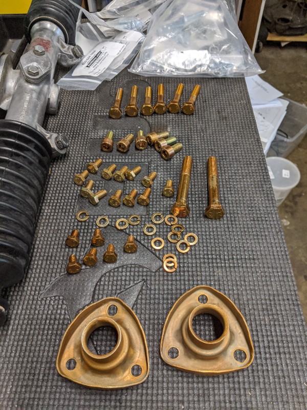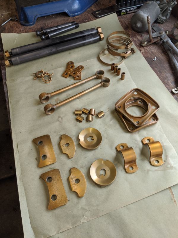At the same time I had the engine rebuilt by NW connecting rod into a 2ish L displacement (not sure as of this writing whether it is a 1911 or 2056) with a carb cam. The plan was to fit dual Webers (more on that later). I also had the transmission rebuilt to fix a chronic 1st gear grind. And I had some parts re-plated.