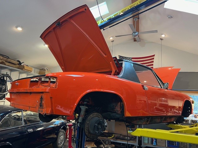 I've had a finished carpenter installing moldings throughout the house, and I gave him the 'parking side' (as opposed to the 'shop side') of the garage in which to set up all of his equipment. So, for over a month the 914 has been up on the hoist with the Ferrari under it.