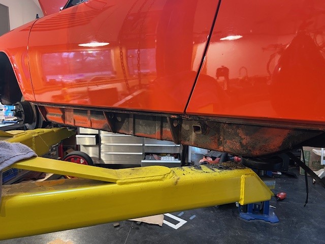 Here are a few pics of where I'm at in the process. One thing I was particularly delighted about upon disassembly is the condition of the rocker panels. They're sound. I knew that it's a solid car, but had never had the covers off.