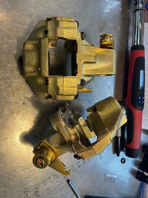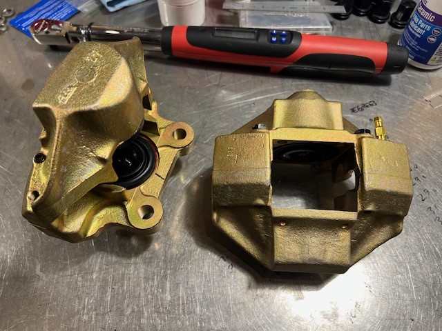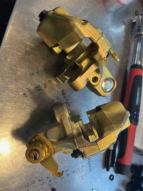 I found some time this weekend, after a week in Florida, to get the rear calipers back together. Another box checked.