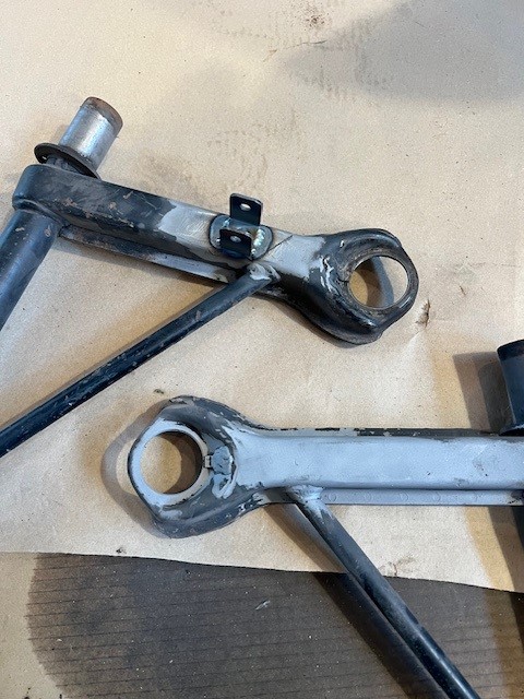 I welded sway bar drop link tabs to the control arms, and dropped them off at the powder coater...