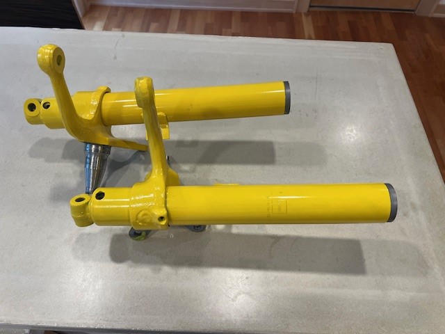 Click to view attachment ...media blasted and painted the struts. Jamie has installed new bushings for me. These are Bilstein struts which of course were originally green. As this is a restomod rather than a restoration, I figured I'd change to yellow so they'll match the shocks.
