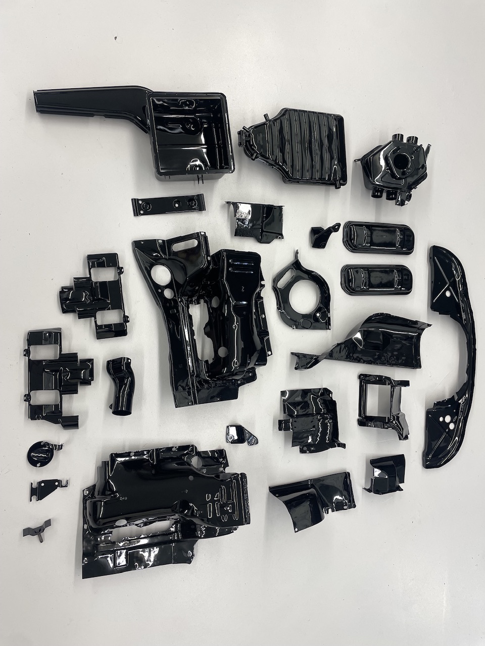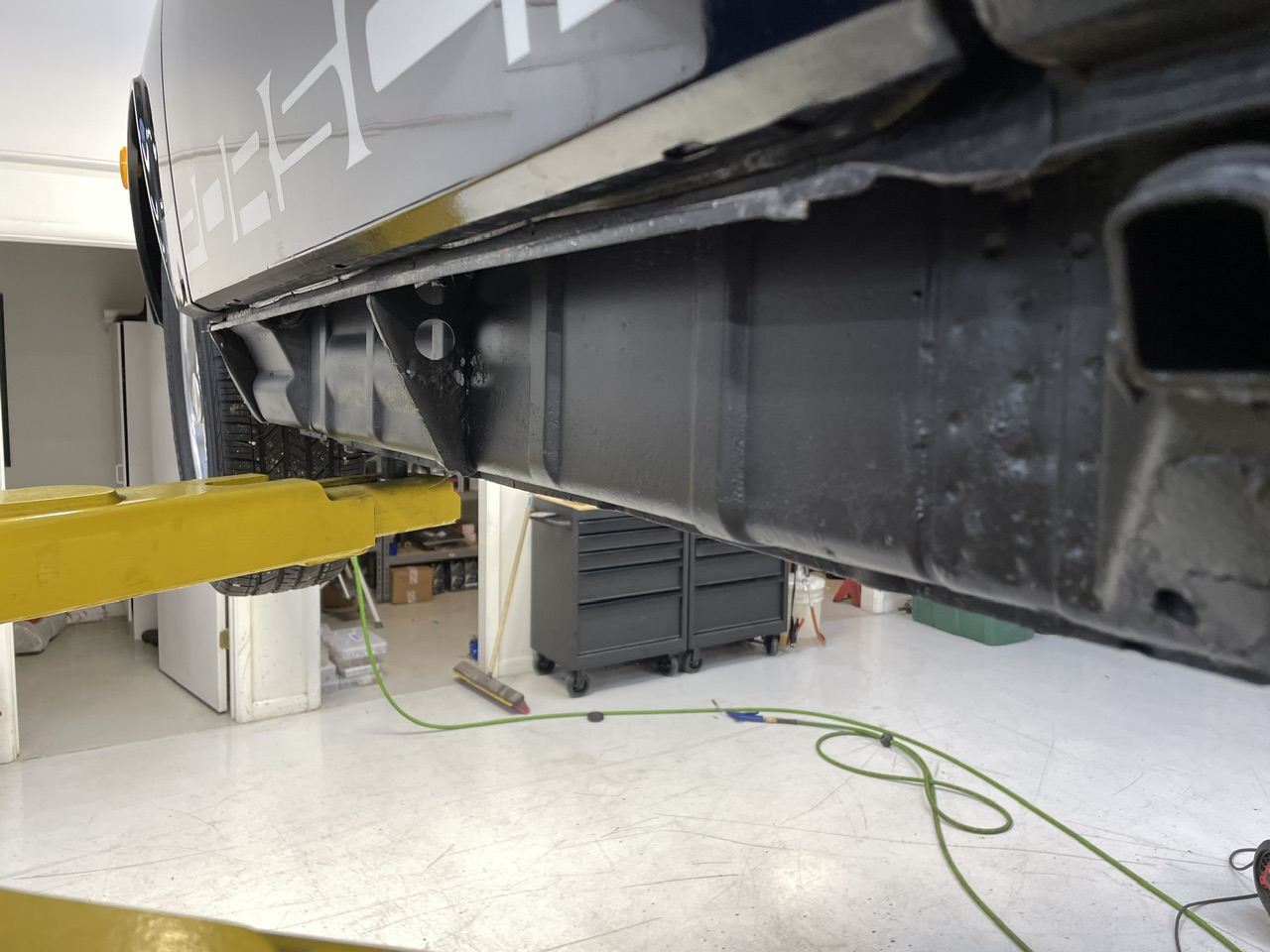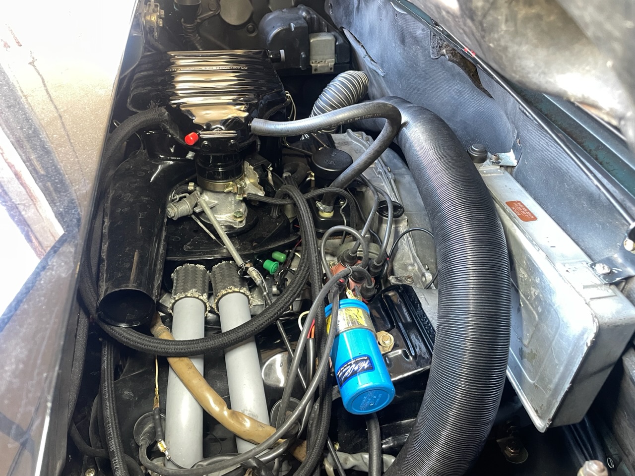 I purchased this car from a long time owner (around 30 years). He had completed a restoration on the car in the 90s. This is when he did the color change to black. The entire car was blown apart to paint.